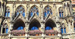 | دار البلدية الجديدة في ميونخ New Town Hall في منتصف القرن التاسع عشر قرر المجلس المحلي لمدينة ميونخ بناء قاعة جديدة للبلدية لكي تستطيع إضافة مساحة كافية للمكاتب الخاصة بها والموقع الجديد كان نتيجة هدم 24 مبنى متضمنا قاعة عقارات ولاية بافاري وقد تم تصميم المبنى الجديد عن طريق جورج هاوبريسر وقد كان قائما على ثلاث منصات أولها بناء من الطوب في الجزء الشرقي وثانيها يمتد في المؤخرة وآخرها في النصف الغربي من حجر الكلس وهو يعد من أبرز معالم مدينة ميونخ. الأجراس الشهيرة في العالم كله التي تعرض أشكالا آلية تعد أكبر رابعة في أوروبا كلها وفي كل يوم في تمام الساعة الحادية عشر تلعب الأجراس أنغاما شعبية وتمثل الأشكال مشاهد من تاريخ ميونخ مثل زفاف النبيل دوك ويليام ورينيه من لورين مع مباريات المبارزة. وفي فترة المساء وتحديدا من الساعة التاسعة في الصيف وفي السابعة من الشتاء ينفخ الحارس الليلي الذي يوجد في الدور السابع في نفيره وملائكة السلام تأتي وتبارك المدينة. |